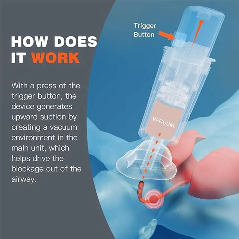 این دستگاه نوآورانه با طراحی ساده و کارایی بالا، در مواقع خفگی میتواند جان افراد را نجات دهد. تنها با فشار یک دکمه، دستگاه مکش قدرتمند 33kPa را فعال کرده و راه هوایی را از هرگونه انسداد پاکسازی میکند.