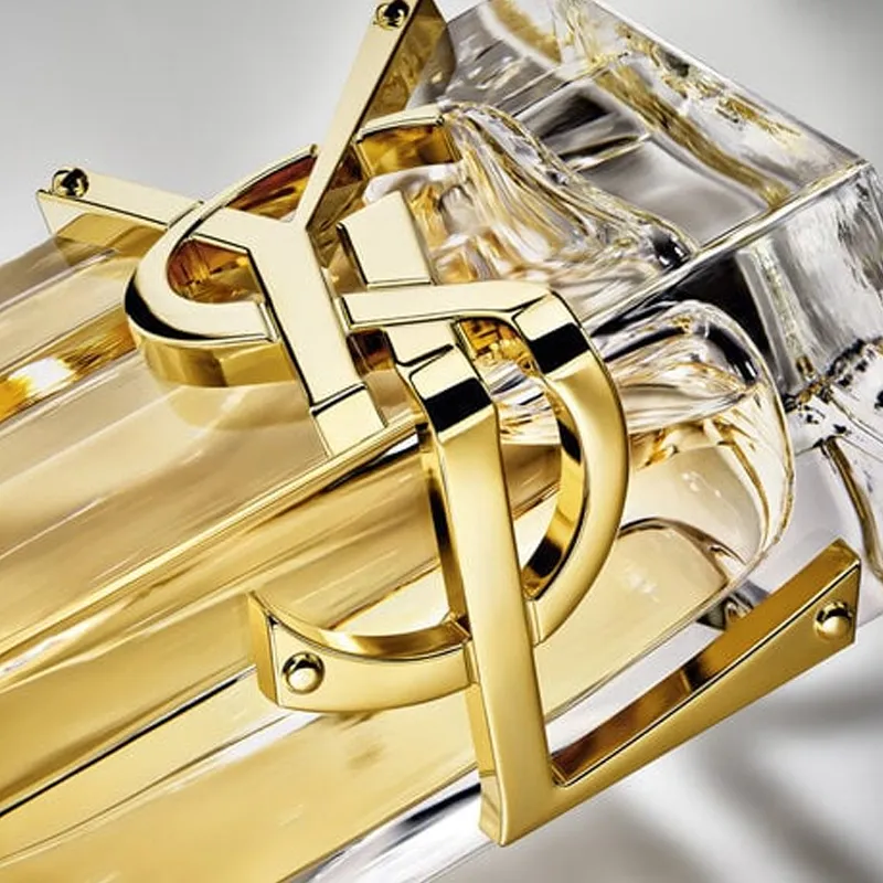 لوگوی طلایی YSL بهصورت برجسته و آزادانه روی شیشه نصب شده و درپوش مشکی نامتقارن با زنجیر طلایی ظریف، ظاهری کاملاً شیک و مدرن به آن میدهد. این طراحی خاص، بطری را به یک اکسسوری زینتی تبدیل کرده است که زیبایی میز آرایش شما را دوچندان میکند.