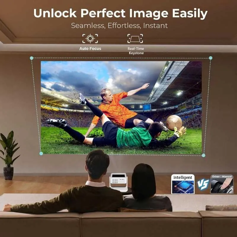 این پروژکتور با رزولوشن اصلی 1920×1080 و پشتیبانی از 4K همراه با شدت روشنایی 800 ANSI Lumens، تصویری زنده، شفاف و رنگهایی غنی ارائه میدهد. چه در فضای باز و چه در اتاق روشن، کیفیت نمایش شما بدون افت خواهد بود. از تماشای فیلم در باغچه و کمپینگ گرفته تا اجرای بازیهای ویدیویی و پخش مسابقات ورزشی، تجربهای سینمایی و هیجانانگیز خواهید داشت.