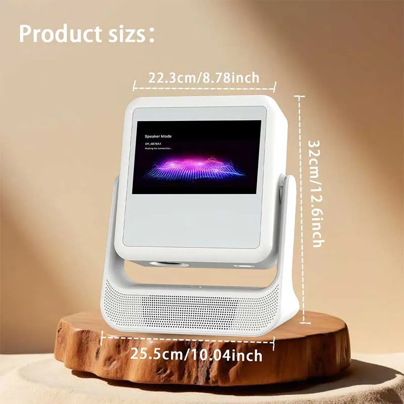 طراحی پرتابل با پایهی قابلچرخش ۱۸۰ درجه به شما اجازه میدهد در هر مکانی – از سقف اتاق خواب تا دیوار حیاط – محتوای خود را بدون نگرانی از زاویهی نمایش تماشا کنید. علاوه بر این، پورتهای متنوع HDMI، USB و Micro SD انعطافپذیری کامل برای اتصال انواع دستگاهها را فراهم میسازد.