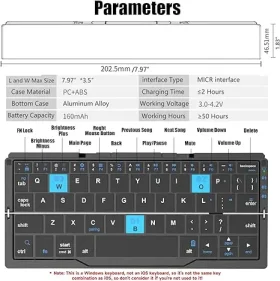 – **کیبورد بلوتوث کوچک شامل استند تلفن و تبلت است:** طراحی نوآورانه تاشو مغناطیسی به راحتی در کیف دستی، کیف و یا کولهپشتی شما جا میشود. ابعاد هنگام تاشو (زمان تاشو): ۷٫۹۷x۱٫۸۳ اینچ؛ ابعاد باز شده: ۷٫۹۷x۳٫۵۱ اینچ. با وزن ۲۵۰ گرم، حتی میتوانید آن را در جیب چاکت خود بگذارید و همه جا باز کنید: در یخچال، در یک کافه یا روی یک پتوی پیکان در کنار دریاچه. استند مغناطیسی (توجه: فقط نقش استند را جا میزند، نیروی مغناطیسی خیلی زیاد نیست، لطفاً از جاذب شدن اشیاء دیگر خودداری کنید)