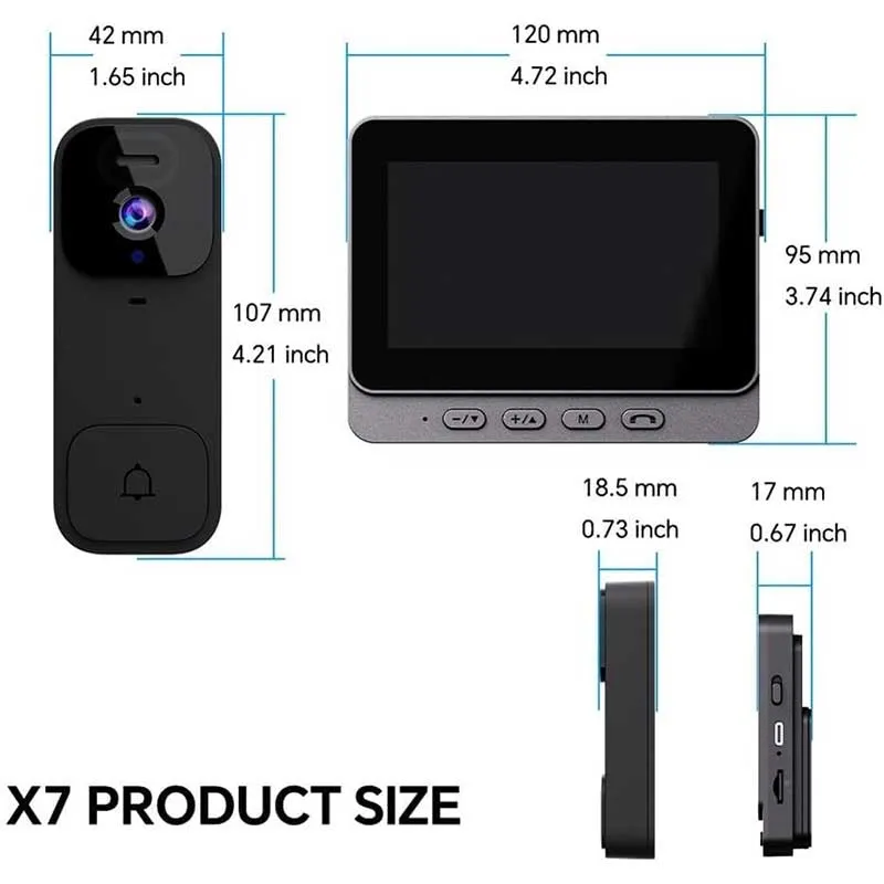 زنگ درب تصویری هوشمند بی سیم با مانیتور 4.3 اینچی مدل X7