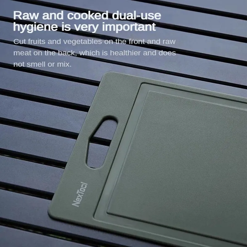 تخته برش: ساخته شده از PP سبک و مقاوم با طراحی دوطرفه بهداشتی؛ یک سمت برای میوه و سبزیجات و سمت دیگر برای گوشت خام، جهت جلوگیری از آلودگی متقاطع.